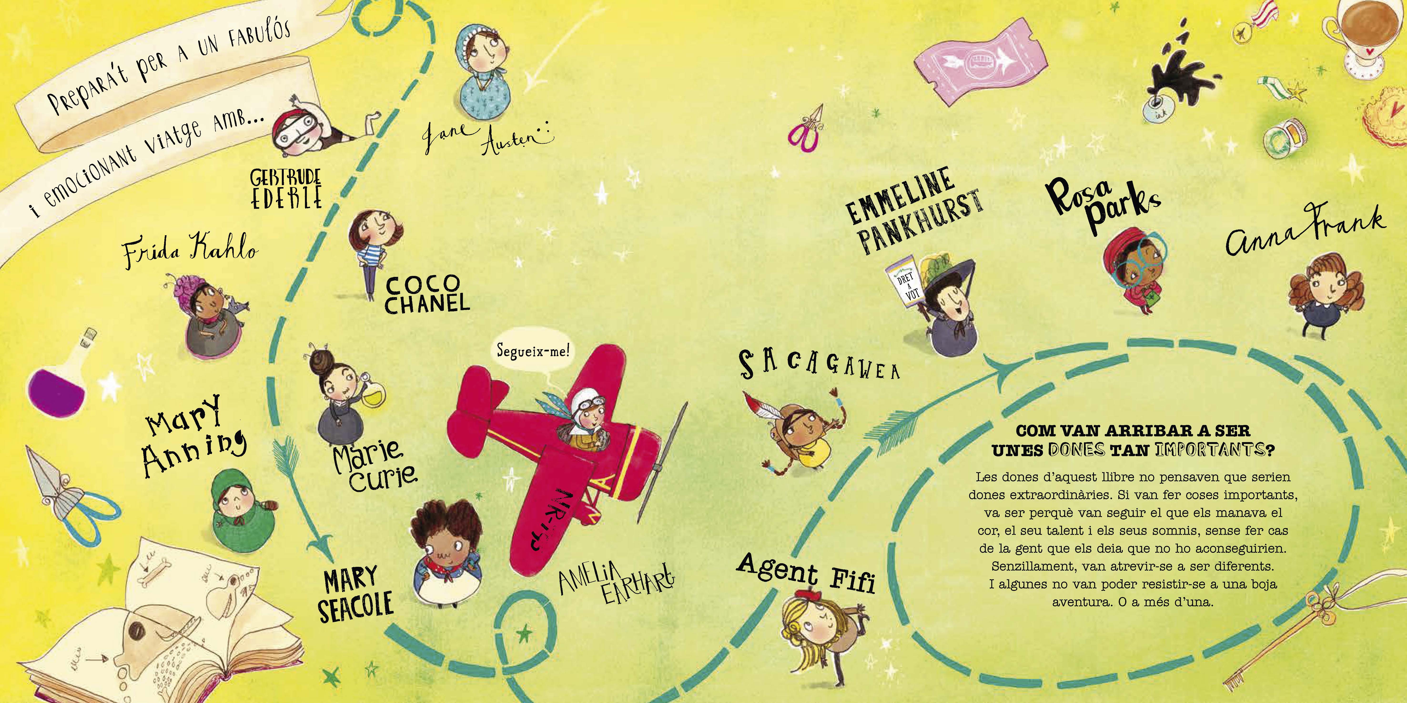 Si estem atents, podrem descobrir un grup de Dones extraordinàries que van canviar el món. Aquest llibre està escrit i il·lustrat per Kate Pankhusrt, descendent –ella mateixa– d’una de les pioneres del sufragisme. Trajectòries tan destacades com les de Jane Austen, Anna Frank, Frida Kahlo, Rosa Parks o Ammelia Earhart s’expliquen en unes pàgines plenes d’informació i dinamisme.